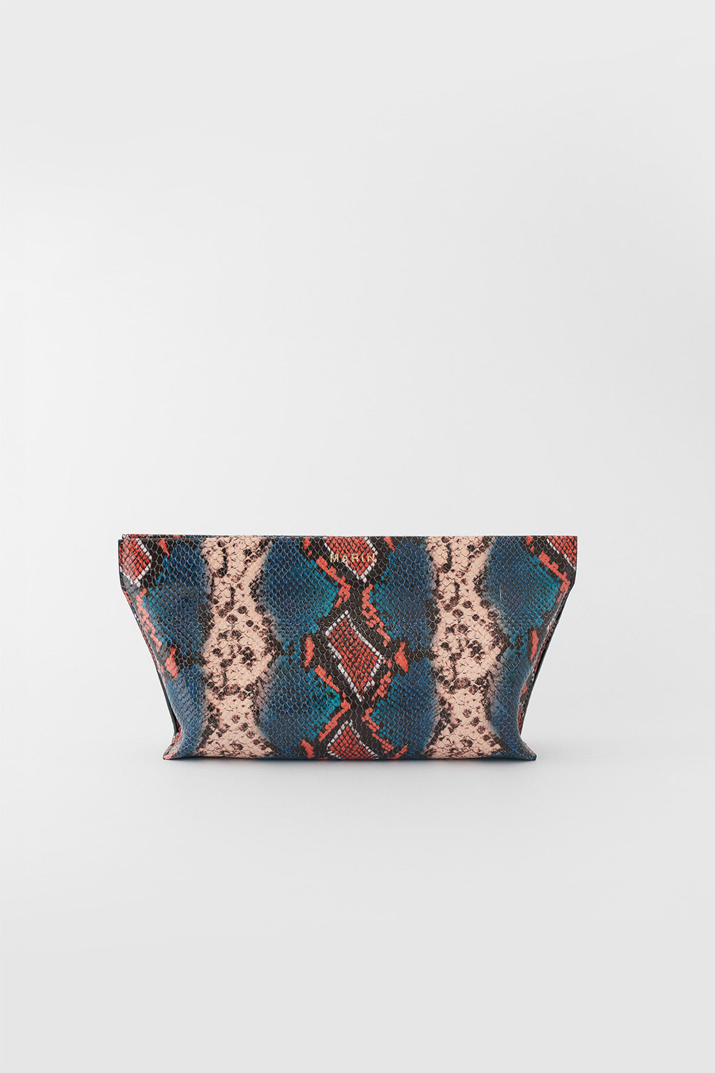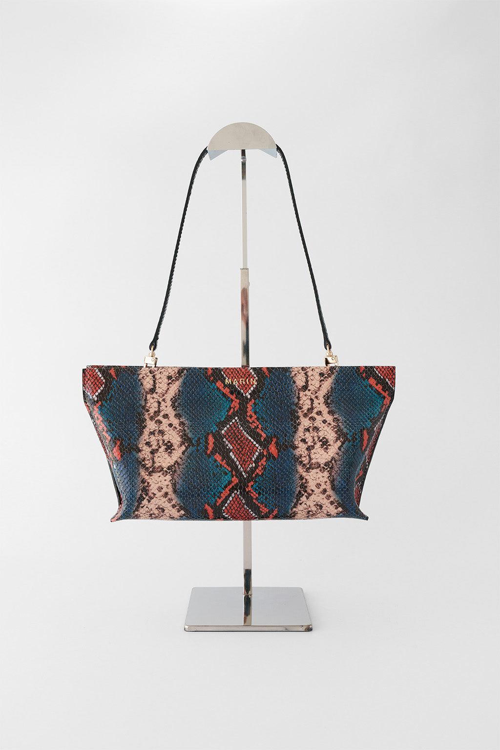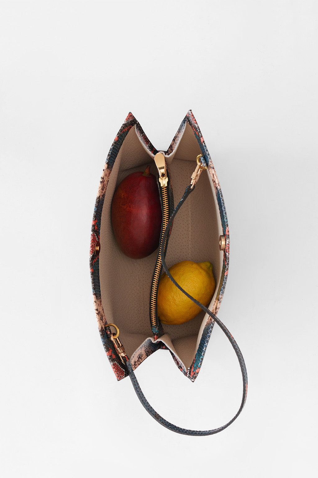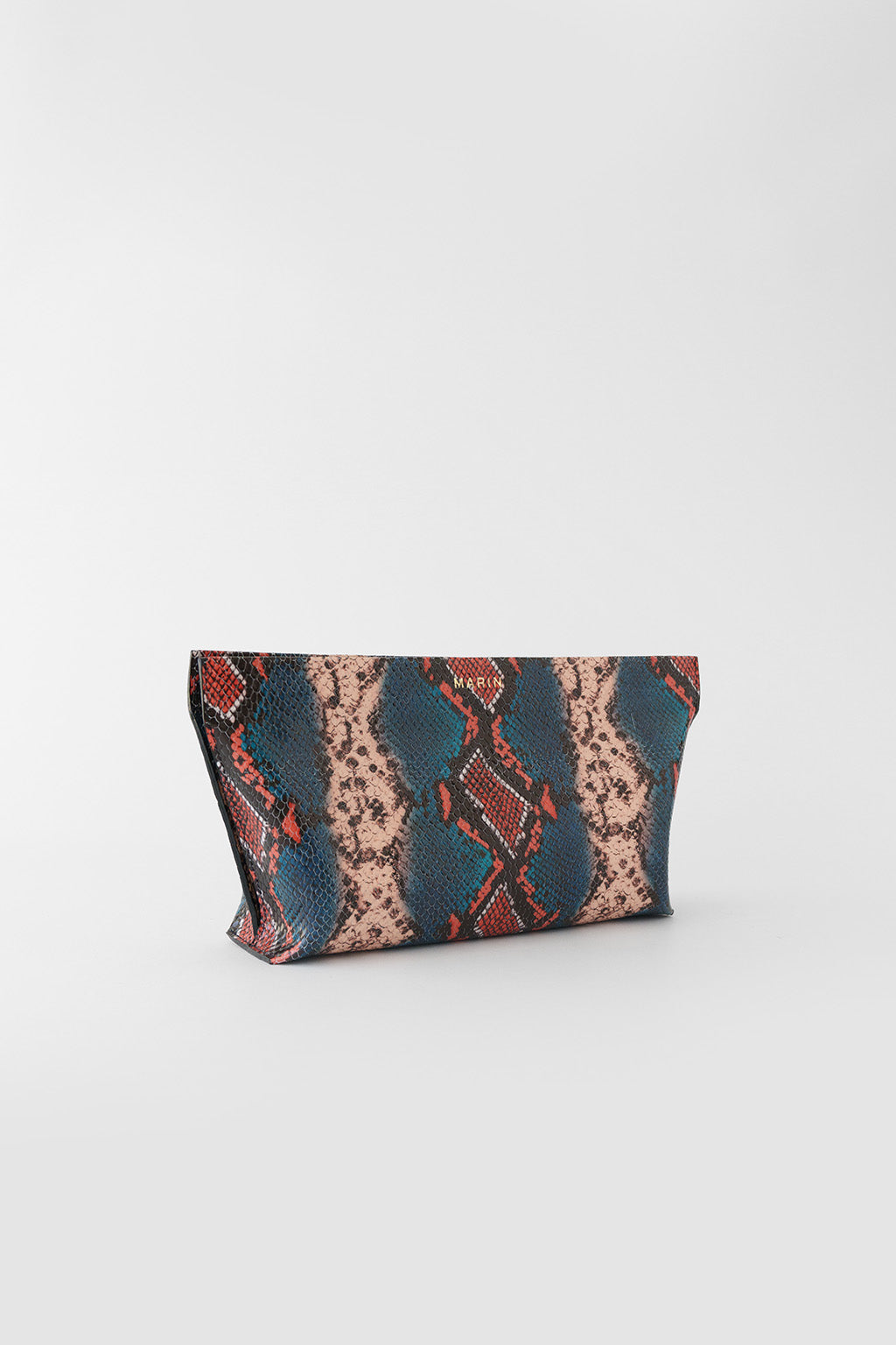 La cartera María nace de un gesto artesanal, moldeada en cuero vacuno estampa italiana de pitón que guarda, en su interior, el tacto suave del cuero de cerdo lustrado color crudo. Su estructura, ligera pero firme, equilibra el carácter clásico con una elegancia contemporánea.